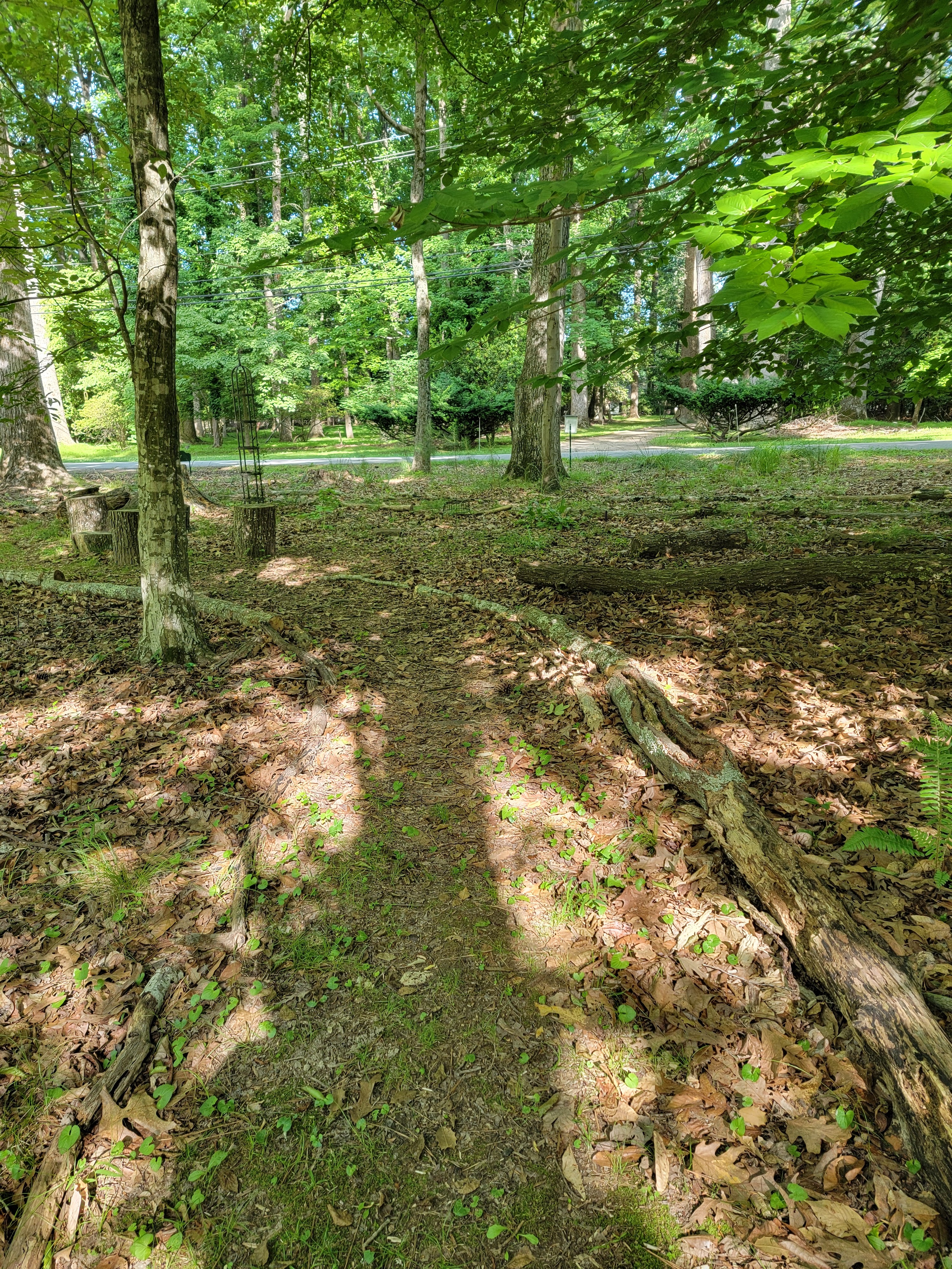 | Pileated Woodpecker foraging on downed wood along the paths April 26, 2023 |